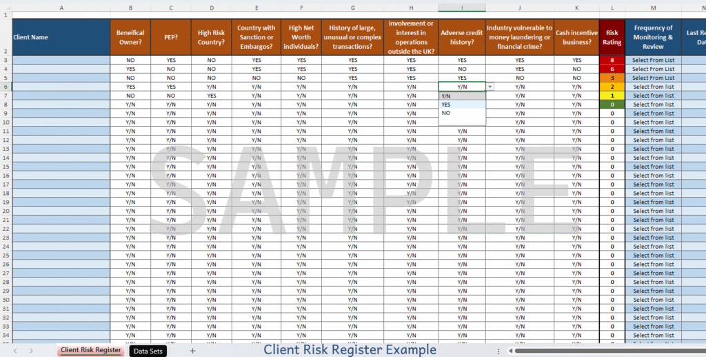 - Includes a Client Risk Register to use with the risk assessment questions, ensuring you are identifying and recording higher risk clients.
