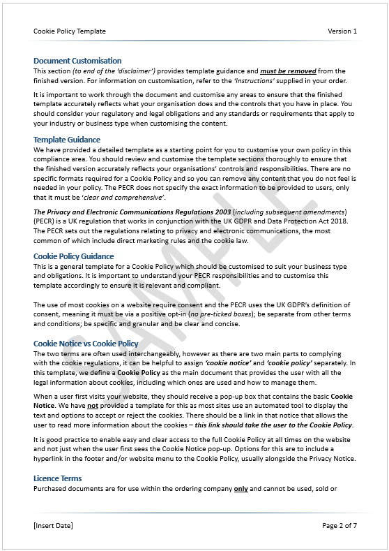- Upgrade options – this policy is also included in our PECR Toolkit and our complete GDPR Toolkit if you are looking for a full compliance framework.