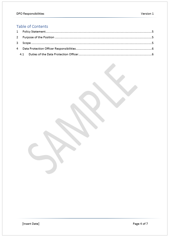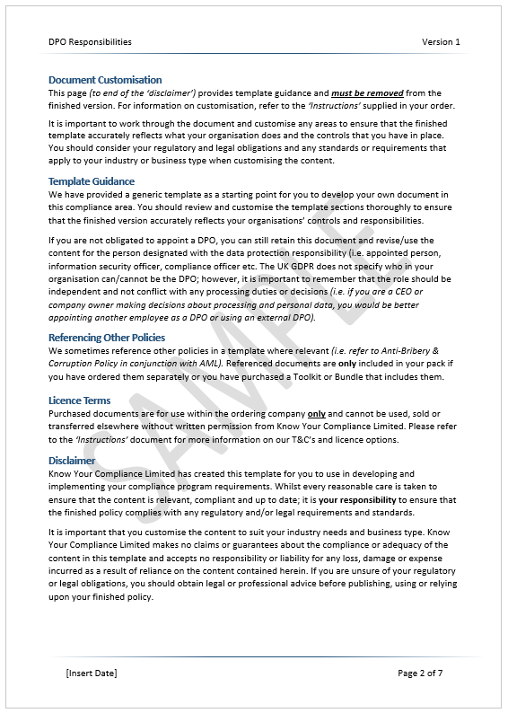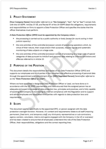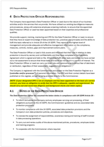 - Compliant DPO responsibilities template written by subject matter experts.