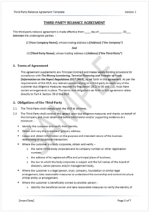 - Third-Party Reliance Agreement Template