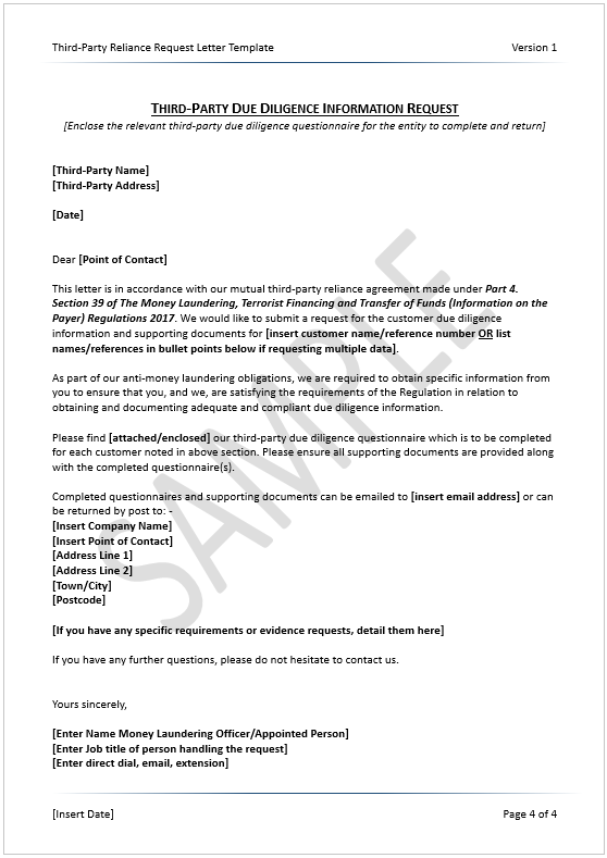 - Third-Party Reliance Letter Template