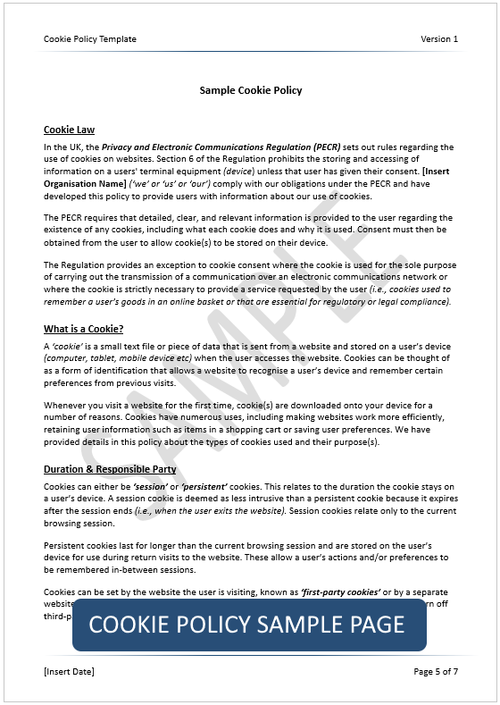 COOKIE Policy TEMPLATE – £10.00 (exc vat)