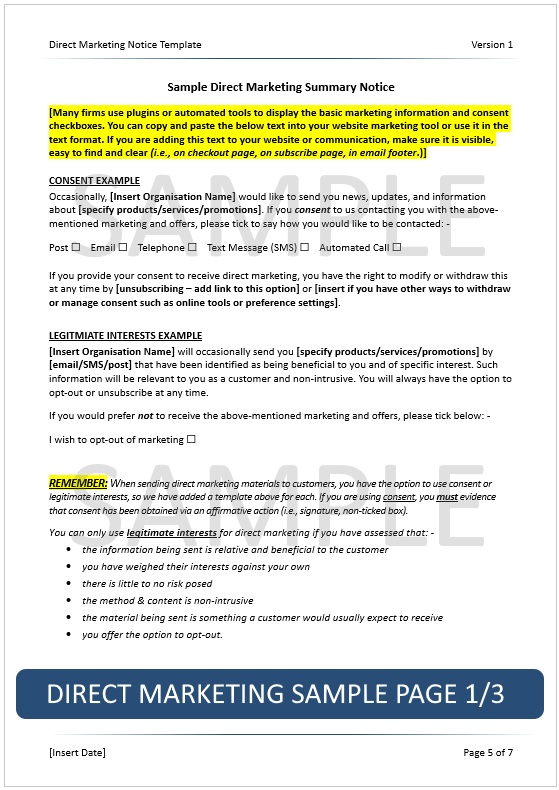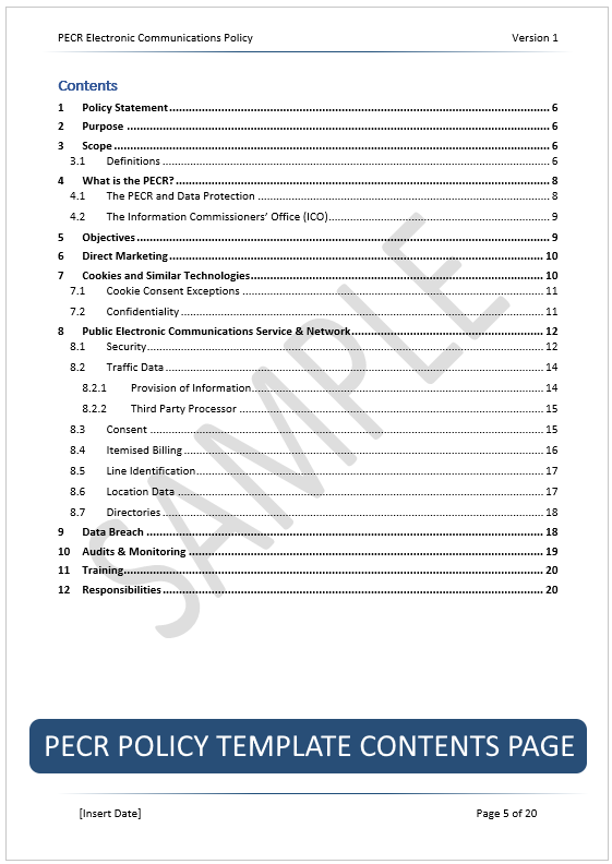Comply with the PECR and ICO guidelines with our PECR Template set.
