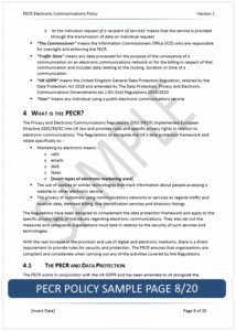 - 8 policies, procedures, checklists and templates for compliance with the Privacy and Electronic Communications Regulations (PECR).