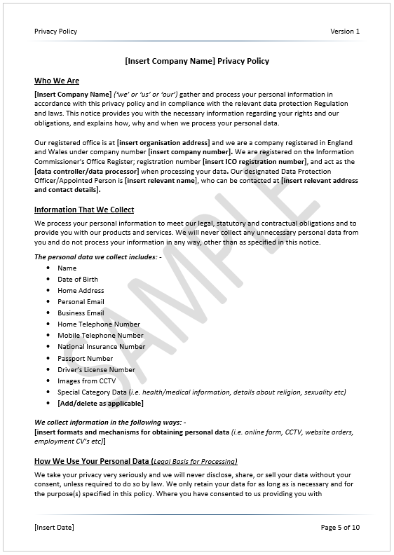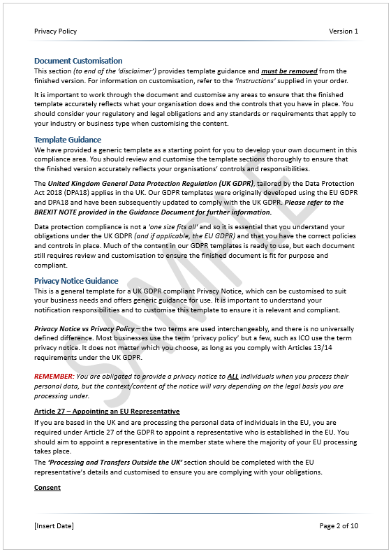 - Get 3 separate privacy policy templates written by UK GDPR experts.
