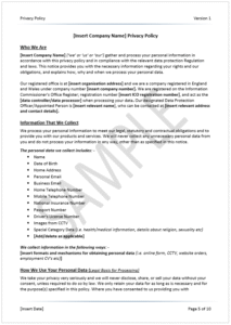 This set contains separate templates for general, employee and website privacy policies. It also includes an Excel privacy notices register, enabling you to keep track of your privacy policies, updates, locations, reviews and purpose. These policy templates are compliant with the GDPR Article 13 requirements.