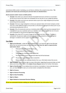 - Complete policy – in addition to the mandatory information disclosures, the privacy policy also includes content for marketing, consent and lodging a complaint.
