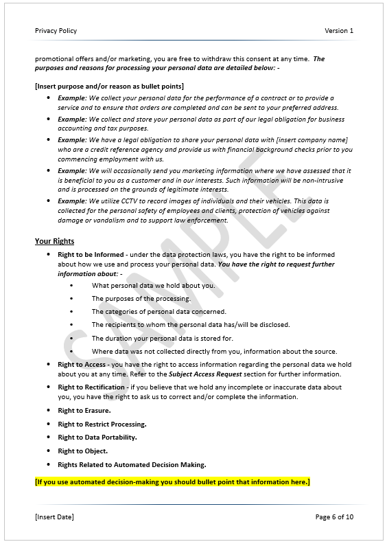 If you process personal data, individuals have a legal right to be informed and access this information. This includes disclosing how you obtain, process and store their personal data. You must provide this information in the form of a privacy policy, which should be clear, simple and accessible.